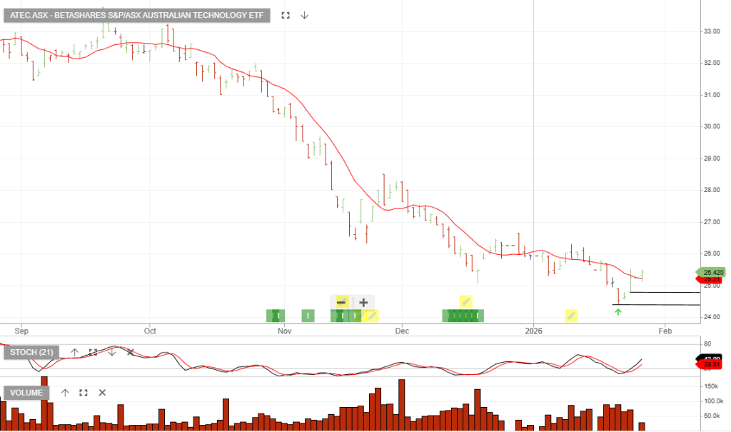 Posted on January 27, 2026 | by Leon HindeBetashares S&P/ASX Australian TechnologyBuy with a stop loss at $24.79You're not a member! Trial today