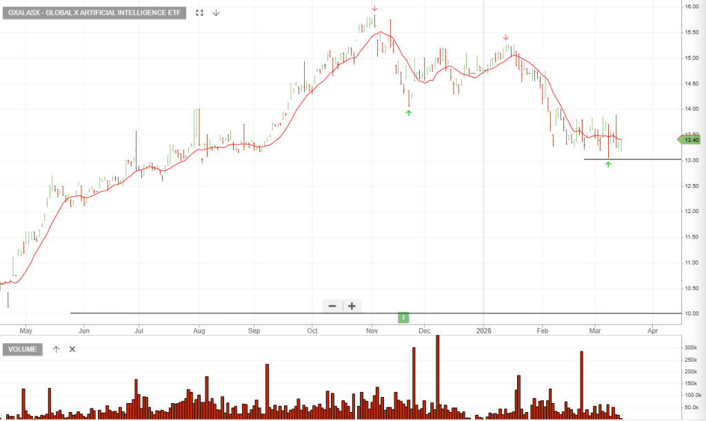 Global X Artificial Intelligence is likely to find buying support above $13.00.