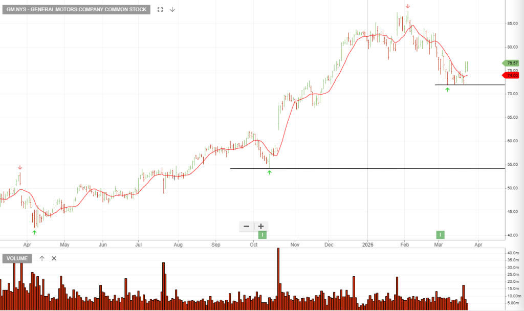 Growth Catalyst: The company is aggressively expanding its Ultium battery platform to support a wider range of next-generation electric vehicles. Entry Price: $75.72, Stop Price: $71.920