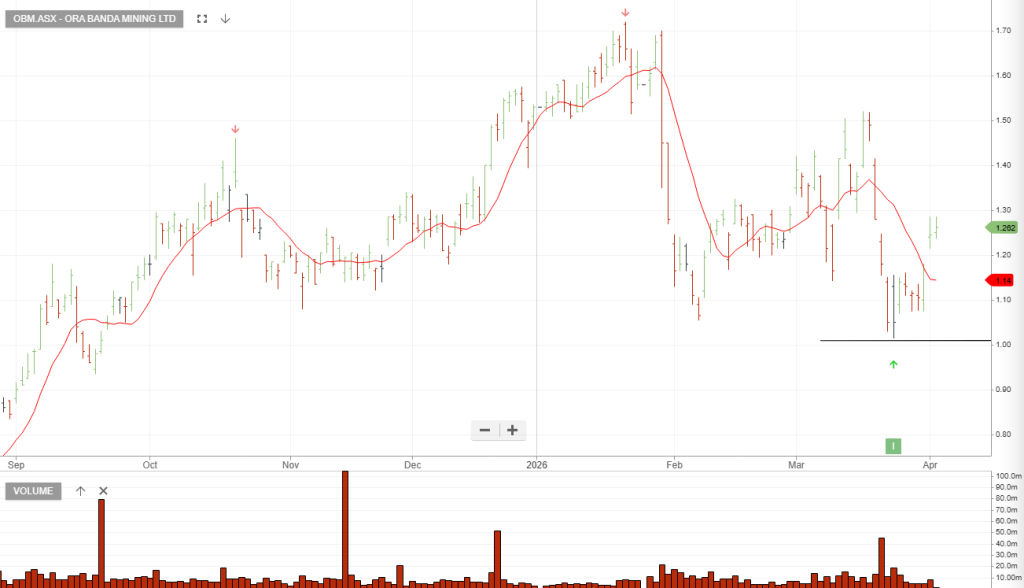 Ora Banda Mining is under Algo Engine buy conditions. Entry price of $1.245, with a protective stop price established at $1.015.