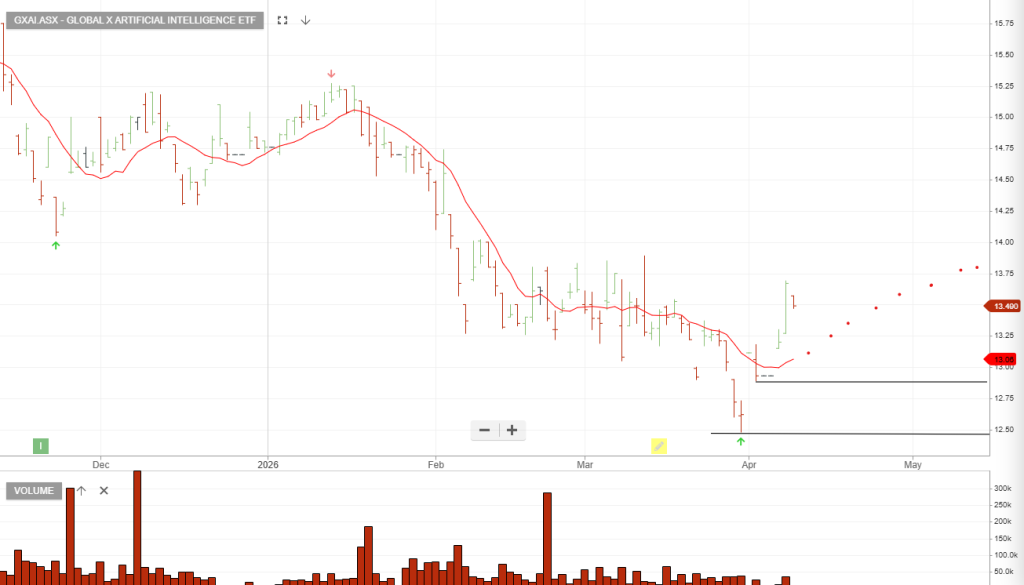 Posted on April 9, 2026 | by Leon HindeGlobal X Artificial Intelligence buy with a stop loss at $12.89You're not a member! Trial today