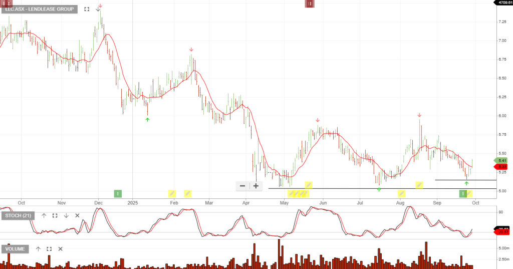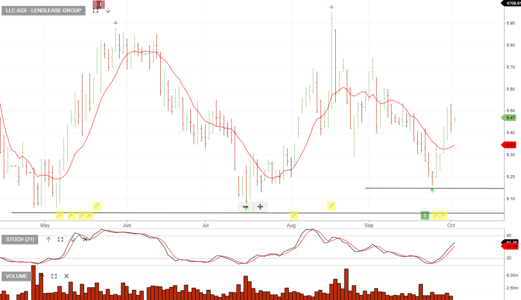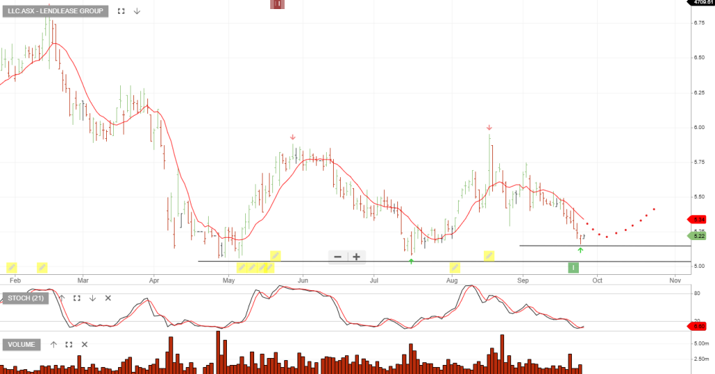 Lendlease is a counter-trend trade where the downtrend is ending and new uptrend is underway.